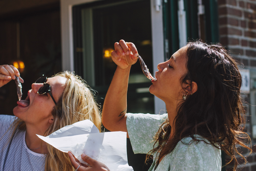 Eating herring is the perfect hangover food for these Scheveningen residents.